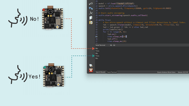 sketch. We will use this example to verify the board's connection to the IDEs and that the Nicla Vision core and the board itself are working as expected.